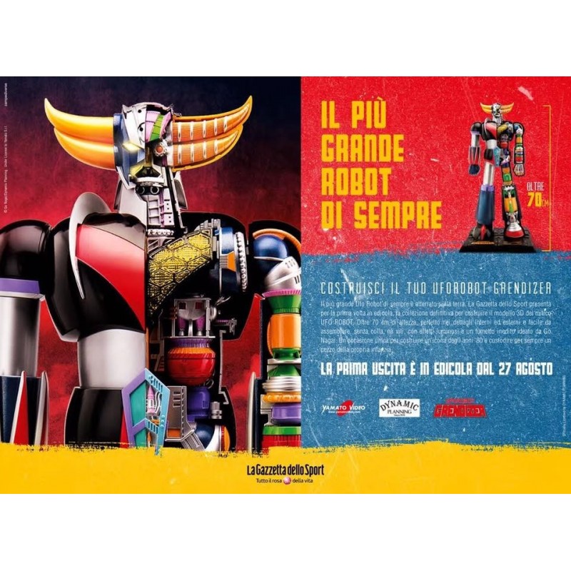 Il più grande Ufo Robot di sempre è atterrato sulla terra. La Gazzetta dello Sport presenta per la prima volta in edicola, la collezione definitiva per costruire il modello 3D del mitico UFO ROBOT. Oltre 70 cm di altezza, perfetto nei dettagli interni ed esterni e facile da assemblare, senza colla, né viti, con effetti luminosi e un fumetto inedito ideato da Go Nagai. Un’occasione unica per costruire un’icona degli anni ‘80 e custodire per sempre un pezzo della propria infanzia.